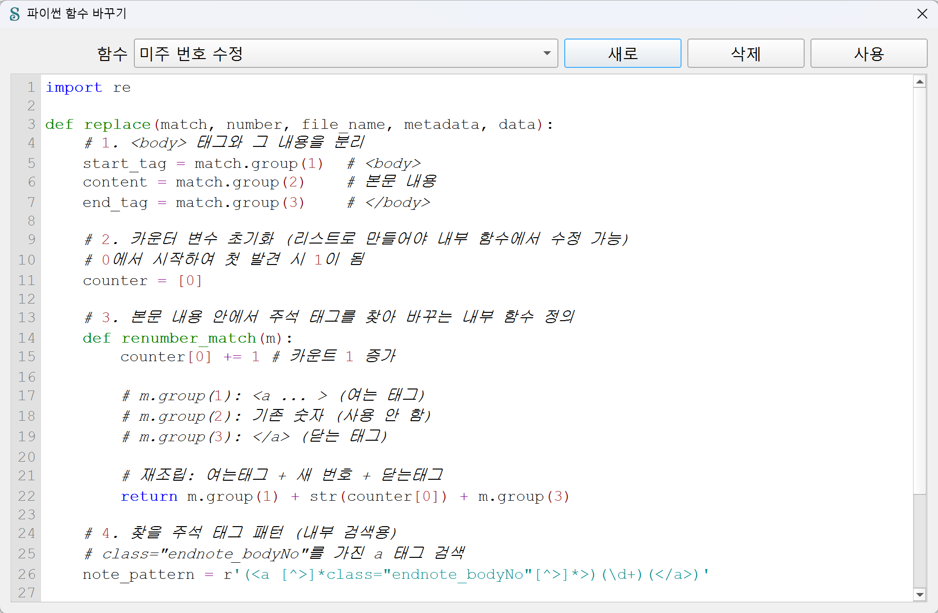 | 찾기/바꾸기를 이용해 본문 주석 번호 새로 붙이기 (0) | 2026.01.13 |