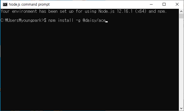 2.1 Node.js command prompt에서 아래 명령어를 입력하고 엔터를 치세요.