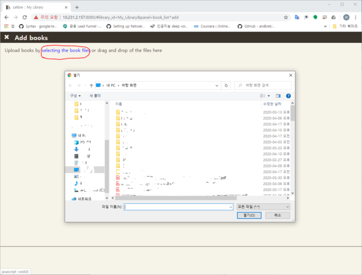 selecting the book file을 누르면 책을 추가할 수 있습니다.