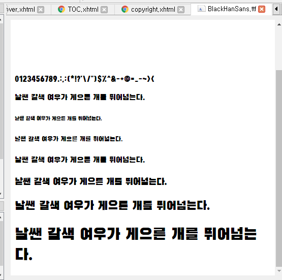 Sigil에 포함시킨 폰트를 확인할 수 있습니다.