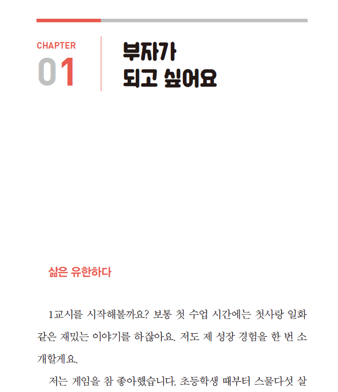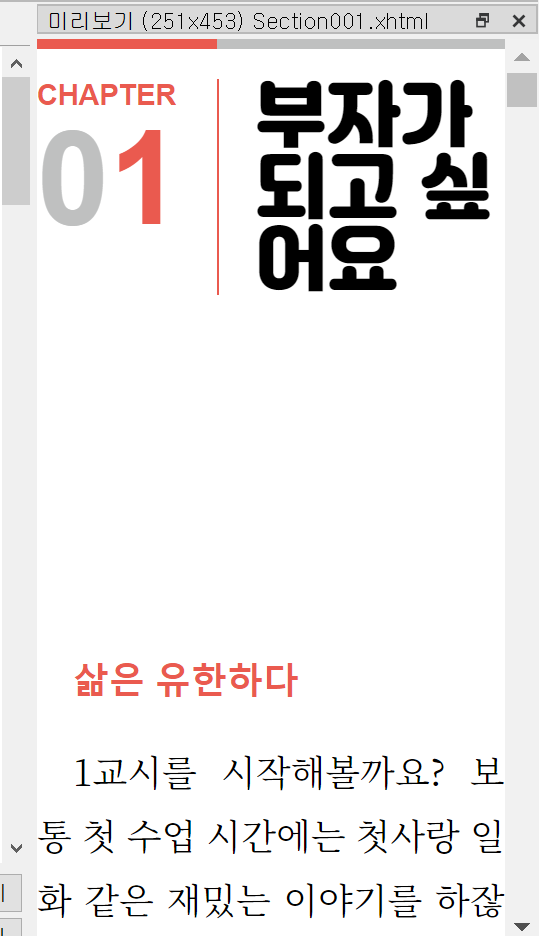 상단 굵은 줄과 장제목, 제목 사이의 빨간 줄이 글자 크기가 바뀔 때 같이 움직여야 해서였어요.