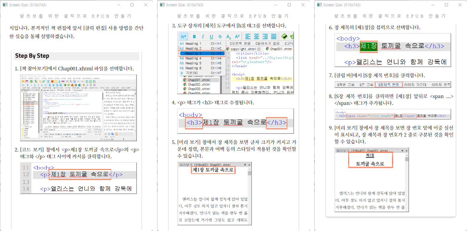 전자책 제작 강의를 하면서 입문자/초보자는 HTML과 CSS를 전혀 모르는 분들이 많았습니다.