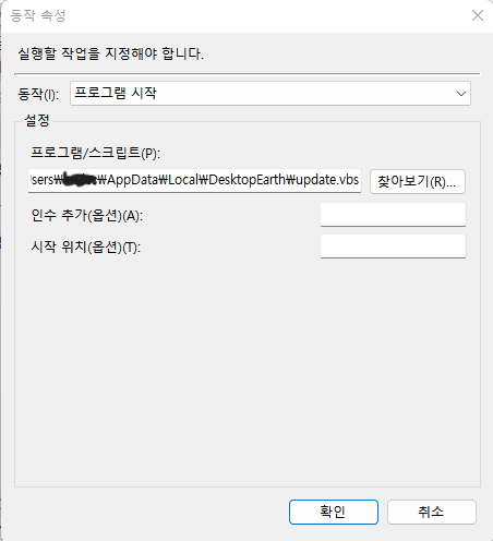 작업 스케줄러를 매일 1시간, 정시에 업데이트 하도록 맞추고 update.vbs를 실행하도록 등록합니다.