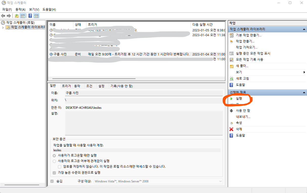 작업 스케줄러 사용법은 다른 곳에 많이 있으니 구글링 해보세요.