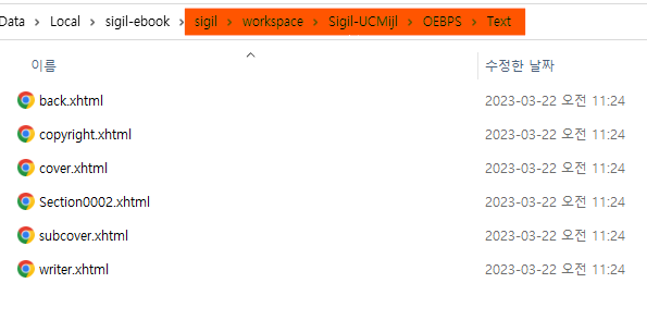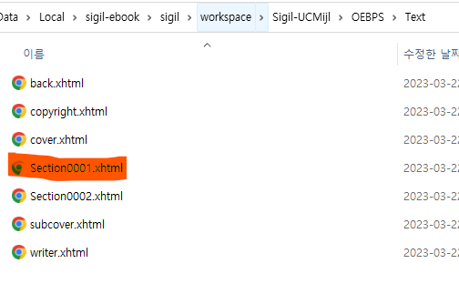 OS의 기본 작업 공간인 Temp에서 하던 작업을 Sigil의 작업공간으로 옮겨왔다는 소리지요.