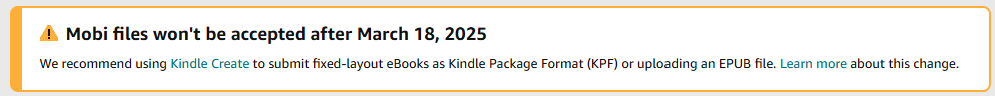 2025년 3월 18일 부터 mobi 파일은 등록 할 수 없습니다.