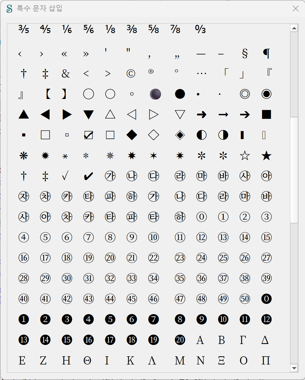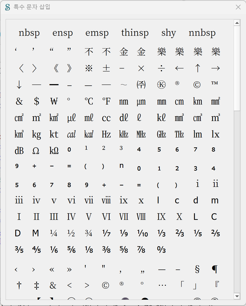 장애인접근성 전자책에서 많이 사용하는 코드, 한국어 책에서 많이 사용하는 코드를 추가해 [특수 문자 삽입] 창을 수정한 파일입니다.