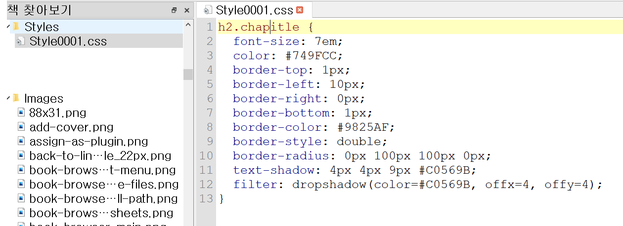 이 코드를 복사해 Sigil의 CSS 파일에 붙여넣습니다.