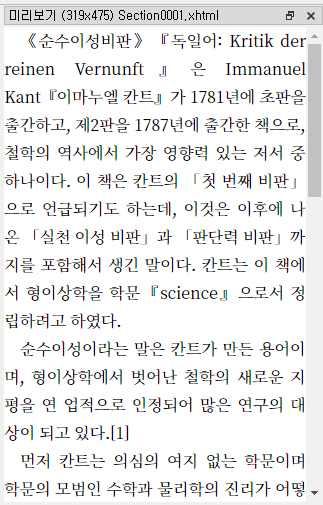 한국출판문화진흥원의 [텍스트형 전자책 제작 지원 사업] 선정 도서는 ‘제작 난이도별 제작비 산정 기준에 근거하여’ 제작 단가를 산정하고, 일정에 맞춰 제작을 해 드리니 많은 문의 바랍니다. 자세한 내용은 여기로: https://www.epubguide.net/notice/309오래 전 작성된 글은 현재의 Sigil 버전과 차이가 날 수 있습니다. 등록 일자를 확인 하고 1년 이상 지난 글은 변경된 내용이 있는지 확인하시기 바랍니다.