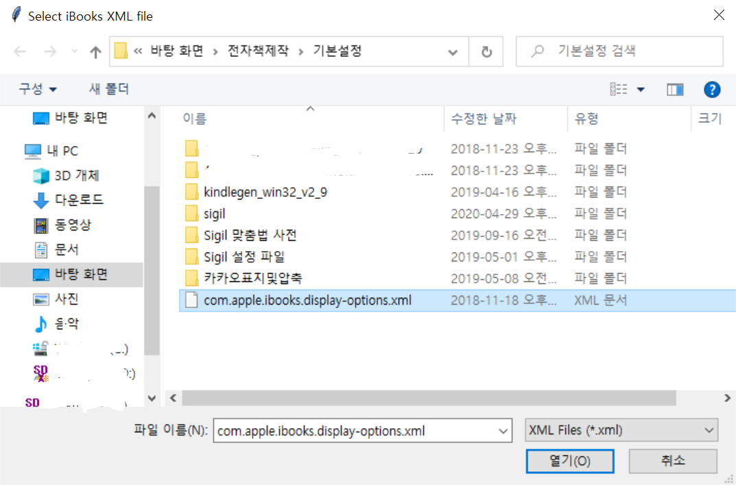 준비한 com.apple.ibooks.display-options.xml 파일을 선택합니다.