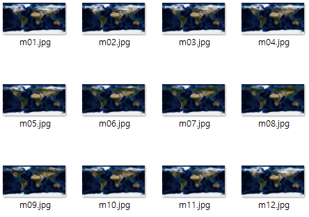 1. 지구 사진을 1월 부터 12월까지 12개를 사용합니다. NASA 사이트에 들어가니 계절 별로 지구 모습이 다르더라구요. 그래서 매월 다른 지구 사진을 사용하도록 수정했습니다. 미묘한 차이지만 북극과 남극의 하얀 부분이 달라져요.