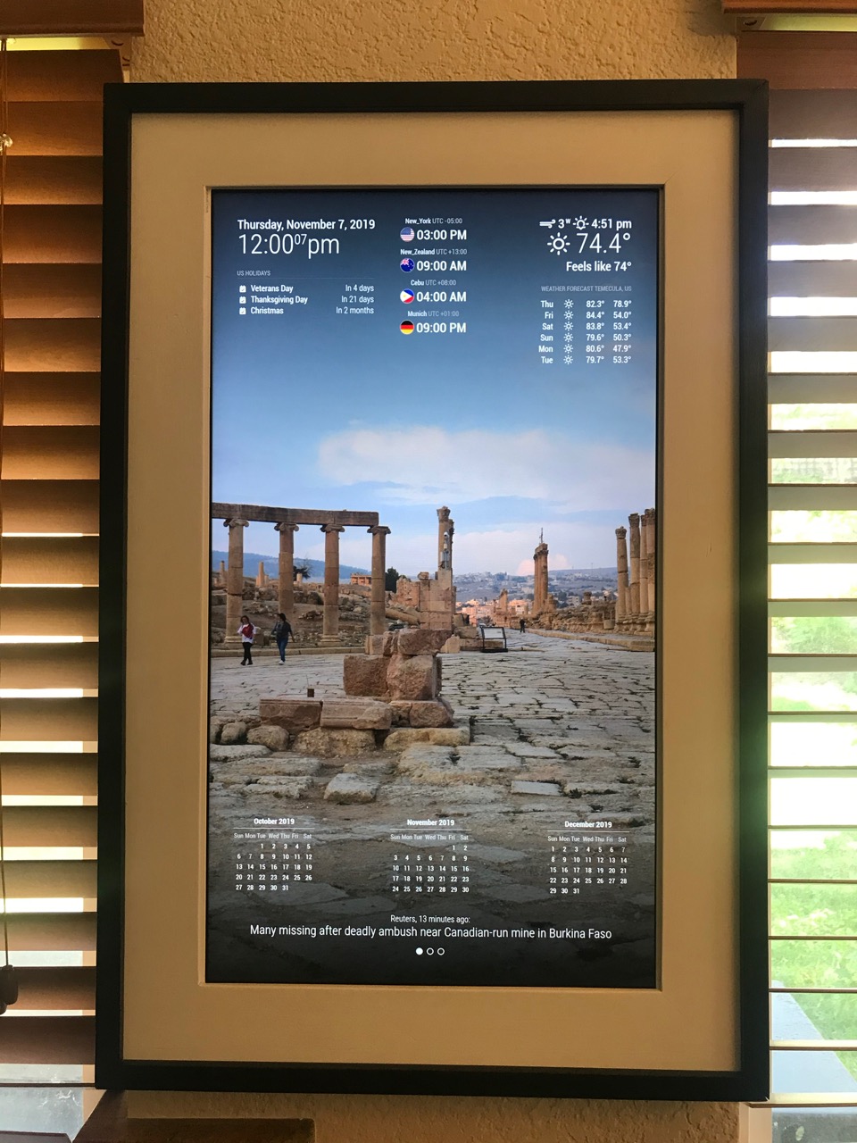 이 프로젝트를 거울에 이용할 수도 있지만, 태블릿/스마트폰 화면에 정보를 표시해 탁상용 스마트폰 달력이나 스마트 달력+액자로도 활용할 수 있어요.