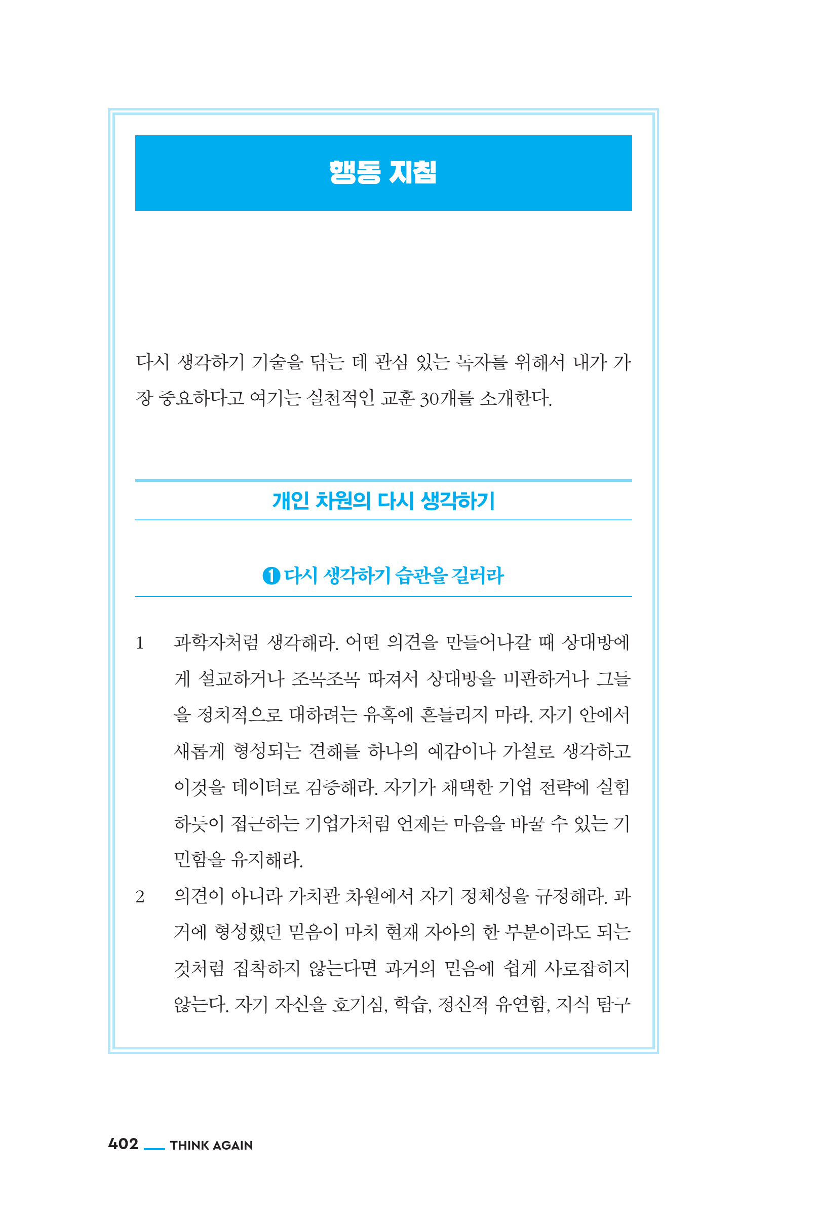 종이책은 좌/우수가 구분되서, 좌측에 THINK AGAIN이, 오른쪽에 ADAM GRANT가 들어갑니다.