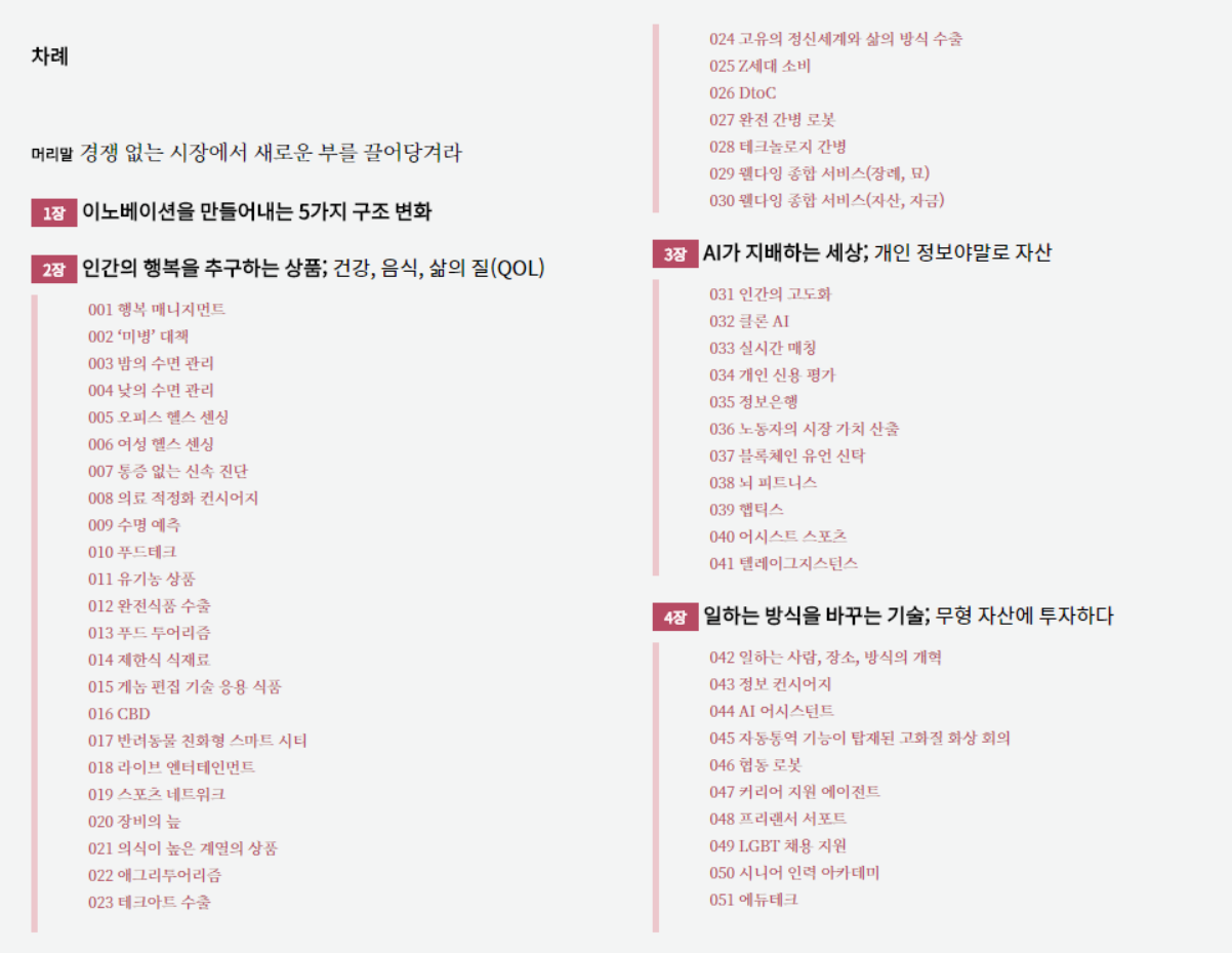 다음 10년간 블루오션이 될 수 있는 시장을 100개 선정하고